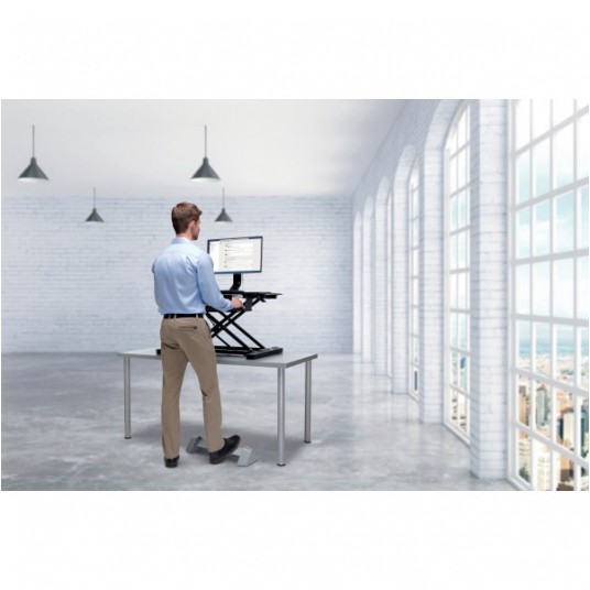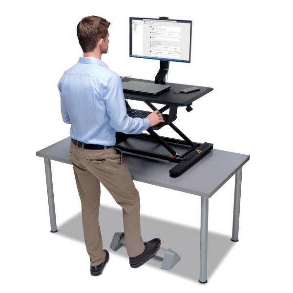 Idealnie sprawdzi się przy biurkach do pracy w pozycji siedzącej lub stojącej.