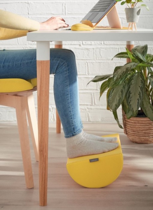 Stylowy podnóżek do używania podczas pracy przy biurku, zaprojektowany zgodnie z zasadami ergonomii, aby zmaksymalizować komfort w miejscu pracy