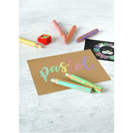 Unikatowy geniusz: zwykła kredka, farba akwarelowa oraz kredka świecowa w jednym.