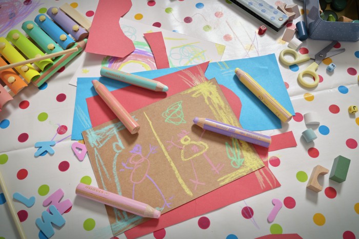 Unikatowy geniusz: zwykła kredka, farba akwarelowa oraz kredka świecowa w jednym.