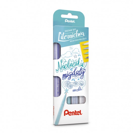 Pisak PENTEL SES15 Brush Sign Pen niebieskie migdały kpl. 4 szt.
