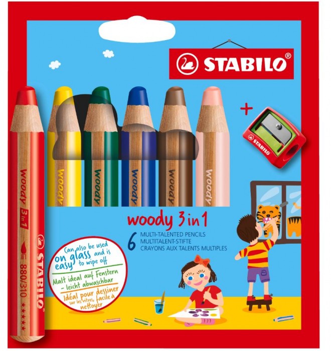 Kredki STABILO woody 3in1 6 kol + temperówka etui