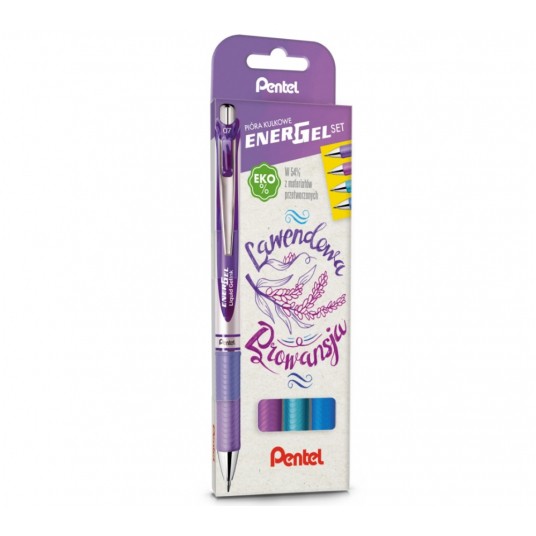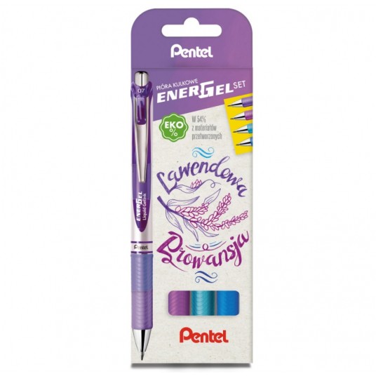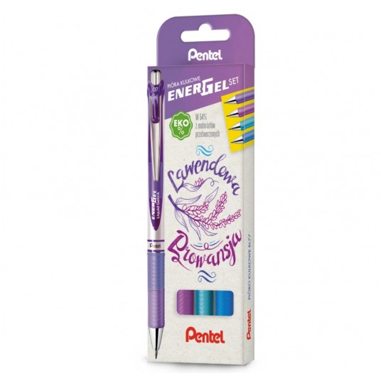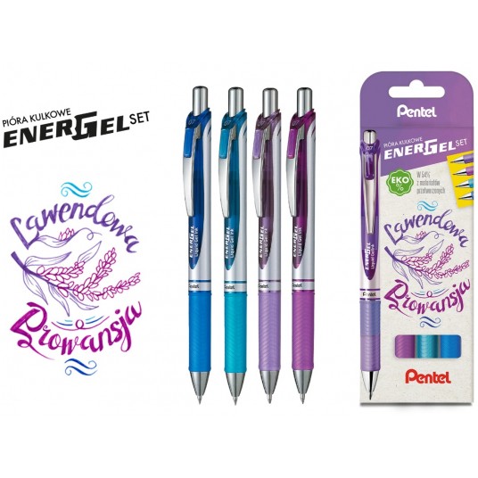 Zestaw PENTEL 4 piór kulkowych EnerGel serii BL77 lawendowa prowansja