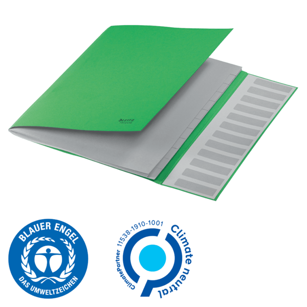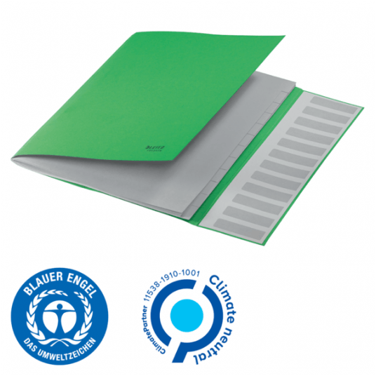 Teczka segregująca LEITZ RECYCLE A4 12 przekładek, zielona