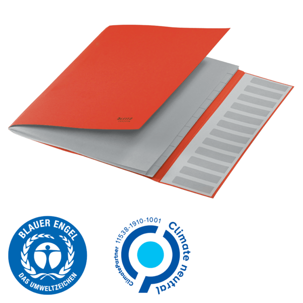 Teczka segregująca LEITZ RECYCLE A4 12 przekładek, czerwona