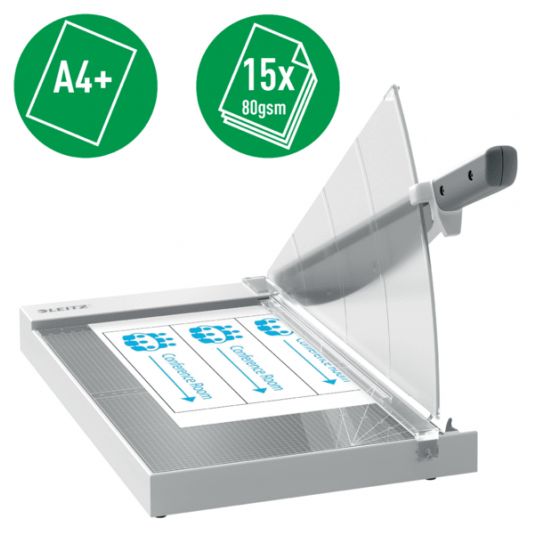 Wydajna i wytrzymała gilotyna w formacie A4+, idealna do użytku biurowego.