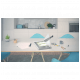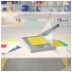 Niezwykle gładka szklana powierzchnia blatu z naniesionymi liniami siatki metrycznej, precyzyjnymi oznaczeniami kątów i formatów, ułatwiającymi odpowiednie ułożenie papieru.