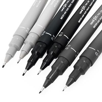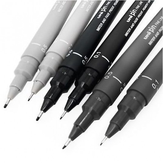 Cienkopisy kreślarskie UNI PIN-200 czarne&szare op./6szt.
