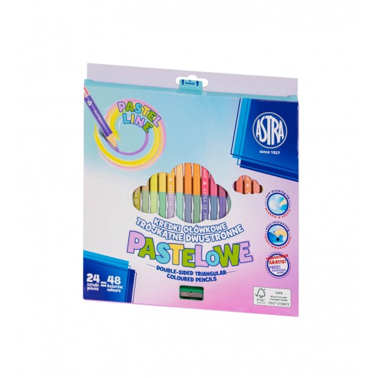 Kredki ołówkowe trójkątne pastelowe ASTRA 24=48kol