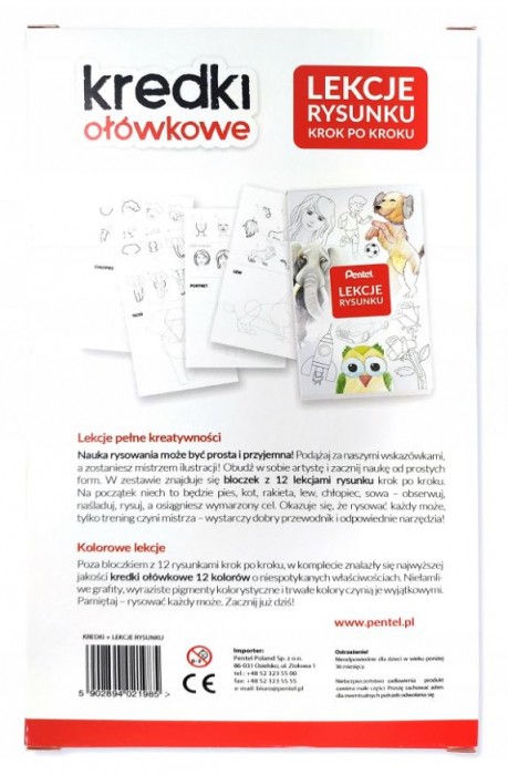 Poza bloczkiem z 12 rysunkami krok po kroku, w komplecie znalazły się najwyższej jakości kredki ołówkowe 12 kolorów CB8-12 o fantastycznych właściwościach.