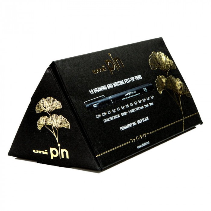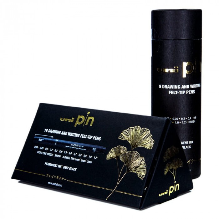 Zestaw z 18 cienkopisami kreślarskimi z różnymi grubościami końcówek