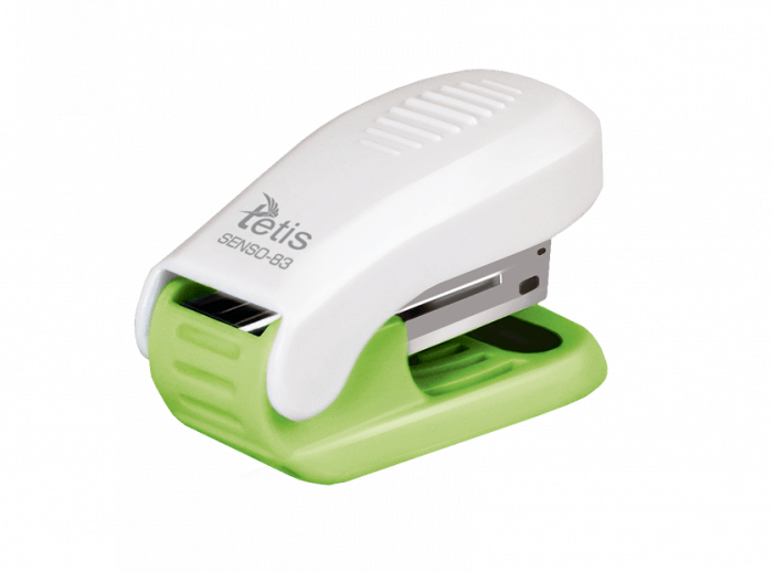 Zszywacz mini TETIS SENSO-83 do 12 kartek biało - zielony