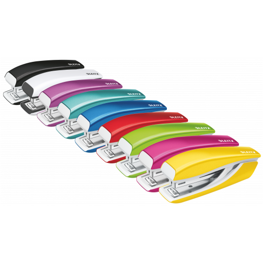 Niewielki, poręczny zszywacz w wyrazistych kolorach WOW do użytku w biurze, w domu i podczas podróży.