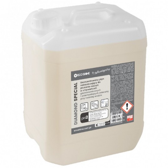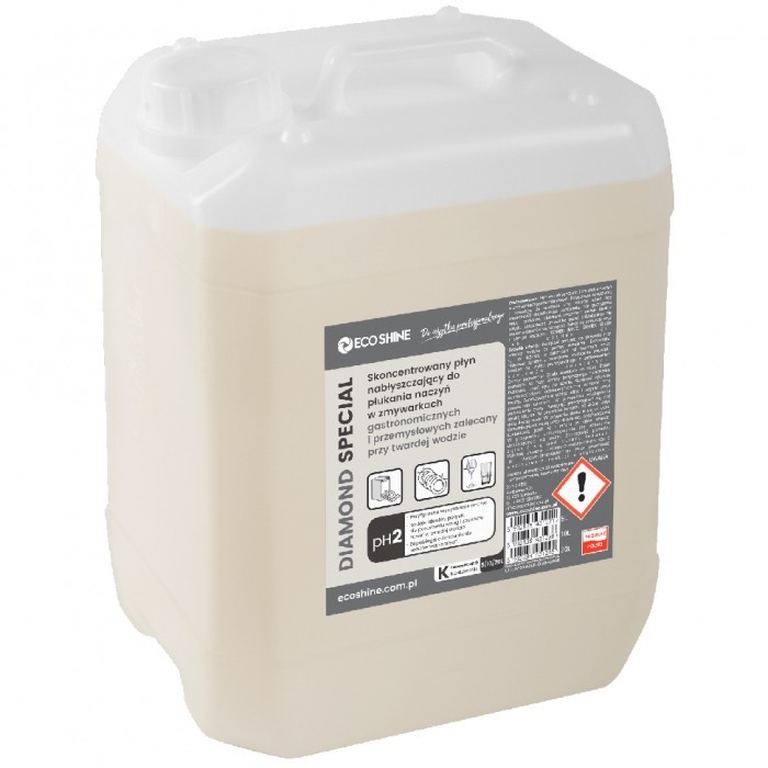 - Skoncentrowany płyn nabłyszczający do płukania naczyń w zmywarkach gastronomicznych i przemysłowych, zalecany przy twardej wodzie - Koncentrat - Przyspiesza wysychanie i powoduje, że naczynia oraz sztućce schną bez konieczności dodatkowego wycierania - Nadaje idealny połysk, nie pozostawia smug i zacieków - Zapobiega odkładaniu się kamienia (osadów wapiennych) w zmywarce - Preparat do wszystkich typów zmywarek gastronomicznych i przemysłowych - Kompatybilny ze wszystkimi typami dozowników - Przedłuża życie dozowników poprzez filtrowanie w procesie produkcji - Diamond Special – rodzaj czyszczenia: maszynowe płukanie i nabłyszczanie w zmywarkach - Zastosowania: szkło, porcelana, sztućce, naczynia, stal nierdzewna, tworzywa sztuczne, garnki - Odradzane zastosowania: brak - Pojemność: 10l