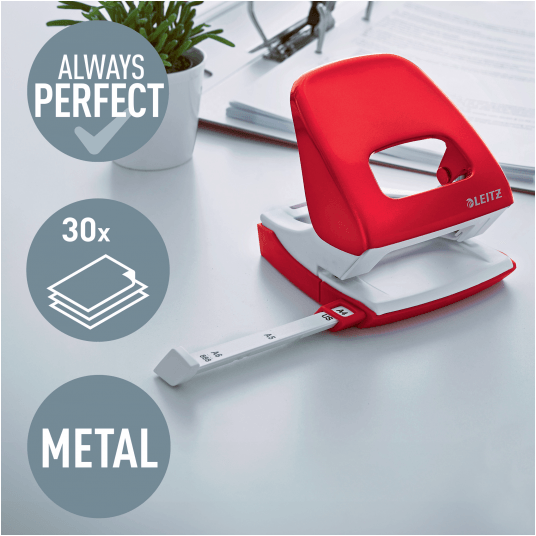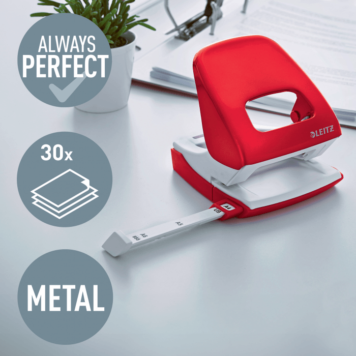 Dziurkacz duży metalowy Leitz WOW, czerwony, 10 lat gwarancji, 30 kartek