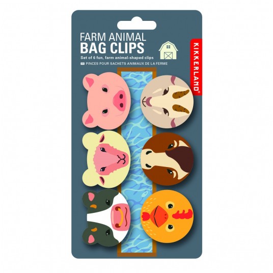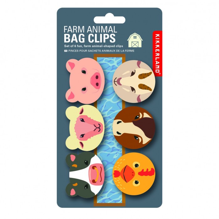 - Zestaw 6 różnych klipsów do opakowań. - W zestawie klipsy w kształcie świni, owcy, krowy, kozy, konia i kurczaka. - Zamykają opakowania i pozwalają zachować świeżość przechowywanym produktom spożywczym. - Projekt: KDT - Zastosowane materiały: plastik, metal - Wymiary: 4,5 x 4 cm