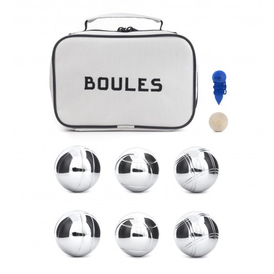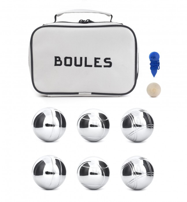 - W zestawie 6 stalowych kul (3 wzory), 1 drewniana kula (tzw. "świnka"), sznurek do odmierzanie odległości.