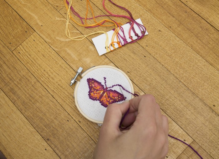 2) kwadratową kanwę do wyszywania o boku 10,9 cm