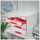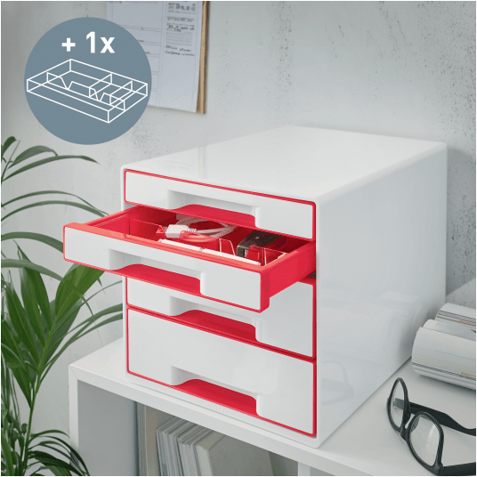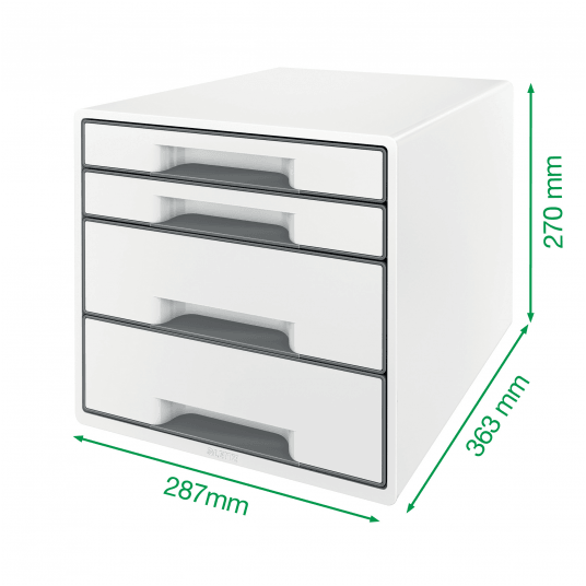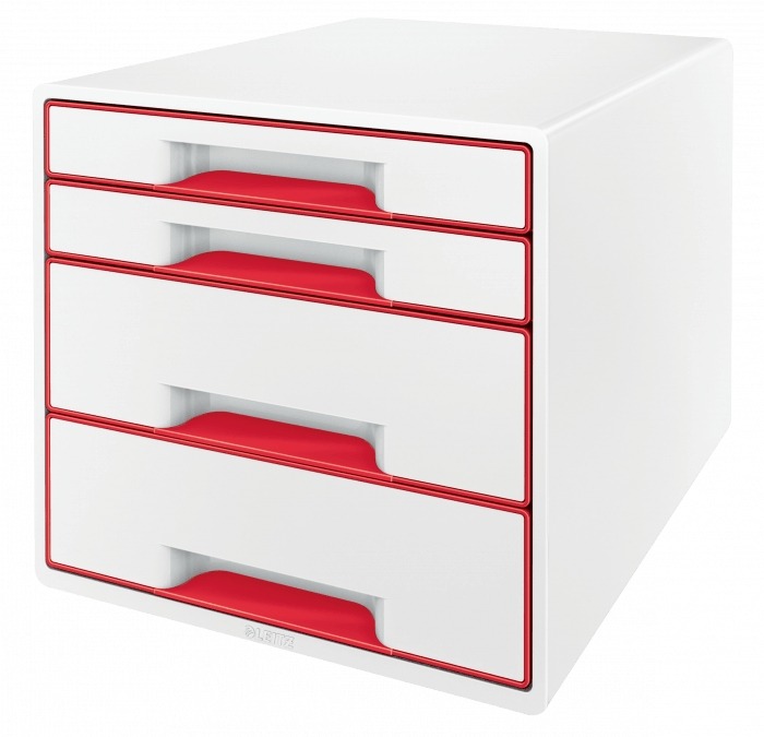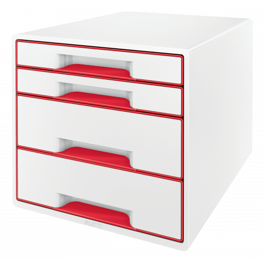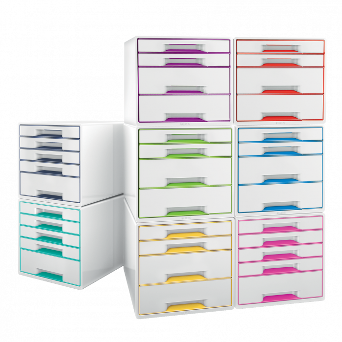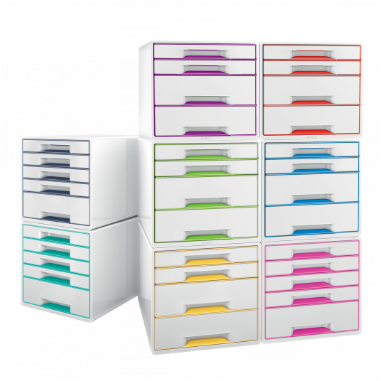 Najwyższej jakości, przykuwający wzrok pojemnik z szufladami WOW CUBE z niezwykłym i stylowym połączniem dwóch kolorów o błyszczącym wykończeniu. Wytrzymały pojemnik z szufladami WOW CUBE doskonale pasuje do pozostałych produktów z kolekcji WOW
