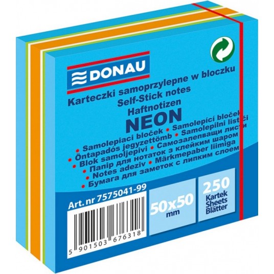 Mini kostka samoprzylepna DONAU 50 x 50 mm 1x250 kart. neon-pastel mix niebieski