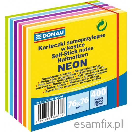 Kostka samoprzylepna DONAU 76 x 76 mm 1x400 kart. 11-warstw mix kolorów