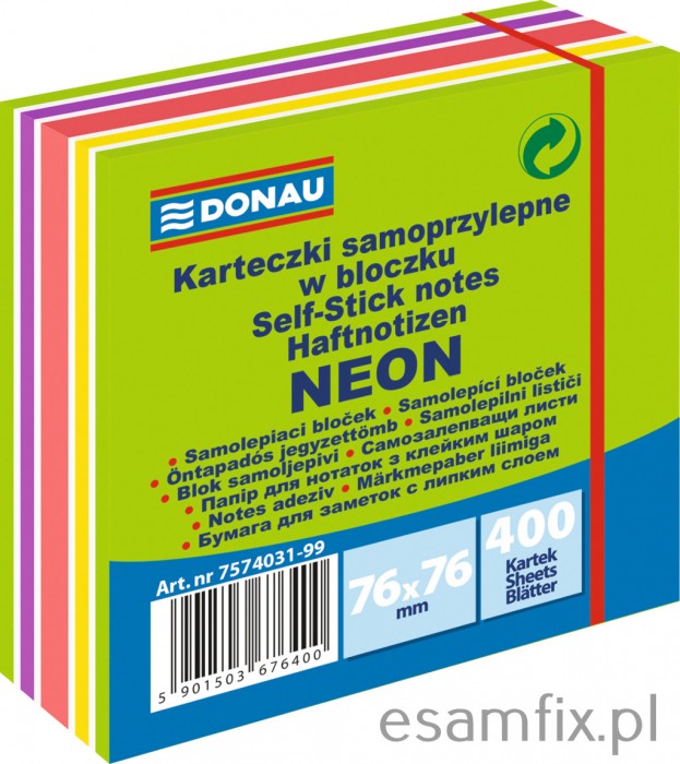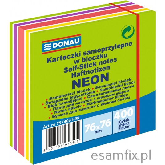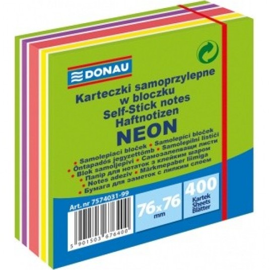 Kostka samoprzylepna DONAU, 76x76mm, 1x400 kart., neon-pastel, mix zielony