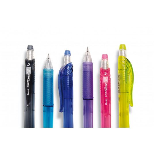 Ołówek automatyczny PL105 zgodny z linią produktów EnerGel. Obudowa w intensywnych kolorach: czarnym, niebieskim, seledynowym, różowym, błękitnym i fioletowym. Duży, wygodny gumowy uchwyt, który poprawia komfort pisania i szkicowania. Cienka końcówka zapewnia precyzyjne linie. System przyciskowy wysuwa grafit w idealnie wymierzonej długości. Wkład nie łamie się i nie rwie kartki. Dedykowany uczniom i studentom. Produkt ekologiczny – wykonany w 84% z materiałów przetworzonych. Pasuje do kompletu z Energelem BLN105!
