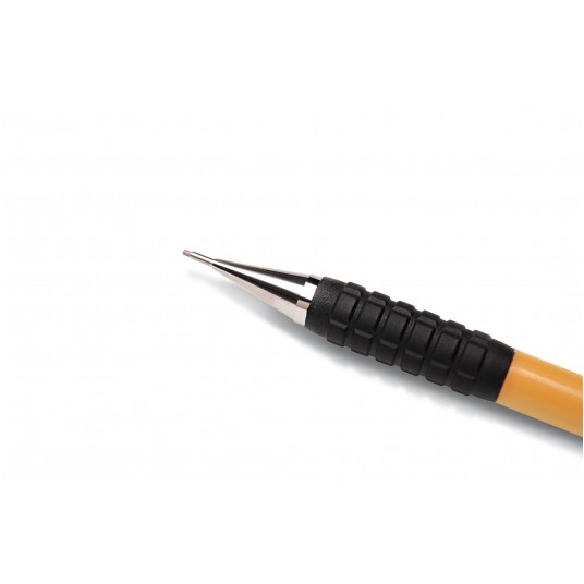 Znakomity jakościowy ołówek 0,9 mm do pisania i kreślenia. Długa końcówka 4,0 mm pozwala na precyzyjną pracę. Posiada metalowy mechanizm zaciskowy, zdejmowany klips oraz gumkę wymienną Z2-1.