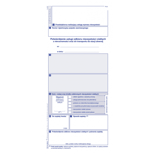 | druk: | jednostronny oryginał + kopia |