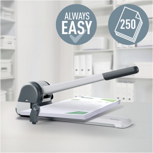 - wyposażony w długie ramię, co zmiejsza siłę nacisku niezbędną do przedziurkowania - dzięki temu bez wysiłku i jednorazowo można przedziurkować połowę ryzy - posiada metalowy, precyzyjny ogranicznik formatu oraz specjalne zabezpieczenie gwarantujące bezpieczną pracę - w ofercie dostępne ostrza zapasowe z instrukcją do samodzielnej wymiany - z ogranicznikiem formatu (A3, A4, A5, A6, Folio, Us Quart, 8 x 8 x 8) - dziurkuje do 250 kartek - certyfikat bezpieczeństwa GS - 10 lat gwarancji