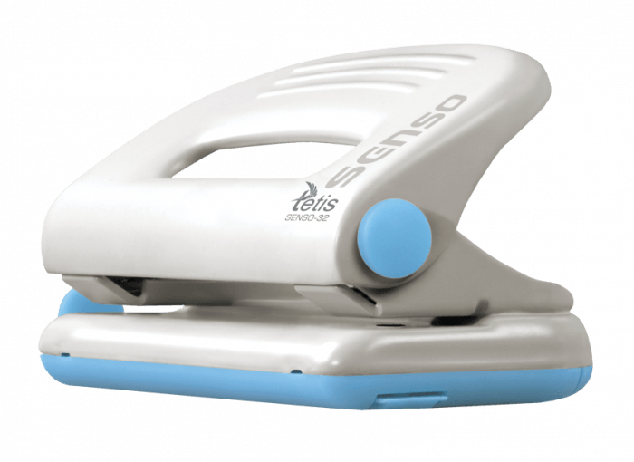 Dziurkacz metalowy biurowy TETIS SENSO-32 do 10 kartek biało-niebieski