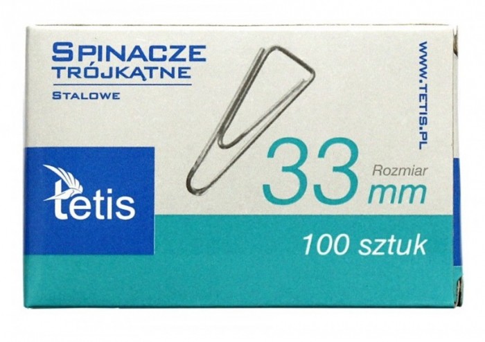 Spinacze biurowe TETIS GS180-C trójkątne 33 mm 100 sztuk