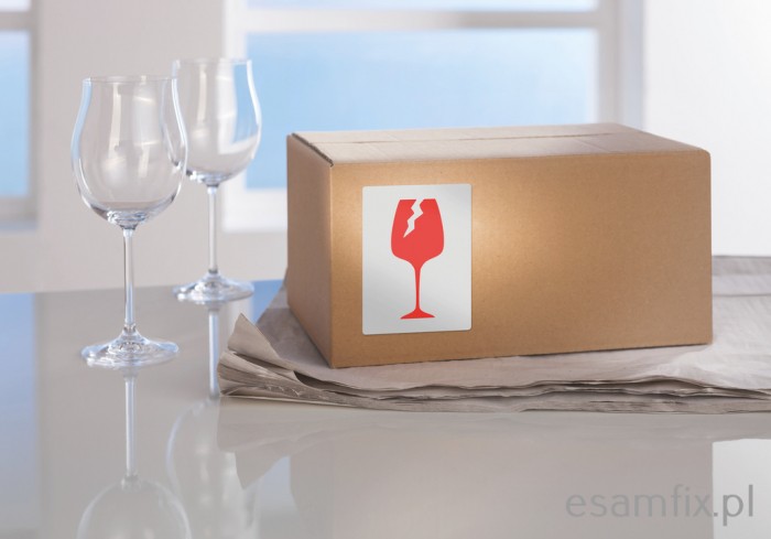 Naklejki ostrzegawcze OSTROŻNIE SZKŁO 74 x 100 mm, czerwone etykiety papierowe 200 etyk. / op., etykiety na paczki, znaki ostrzegawcze 7251 Avery