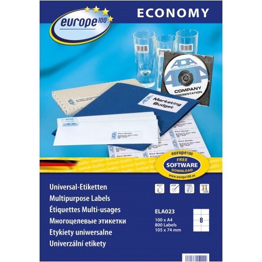 Etykiety uniwersalne Economy Europe100 by Avery Zweckform, A4, 100 ark./op., 105 x 74 mm, białe